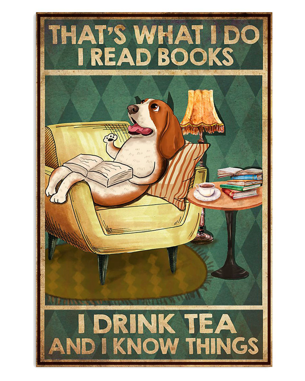 Basset Hound Dog Read Books Drink Tea And Know Things Miniature Basset Hound Puppies Lover Poster