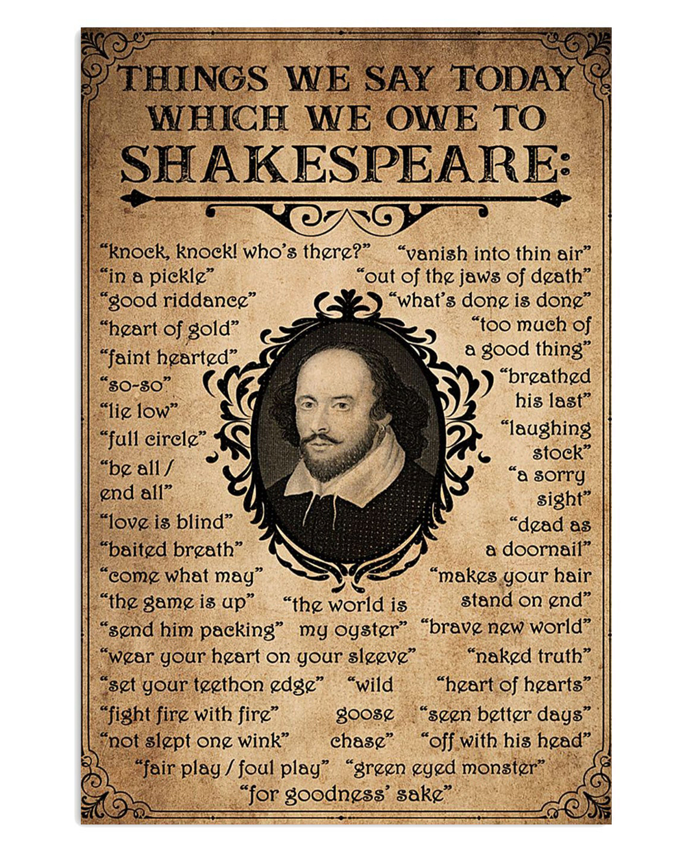 Books Lover Things We Say Today Which We Owe To Shakespeare Books Reader Poster