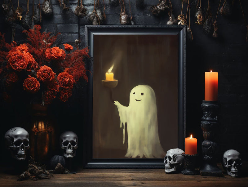 Cute Ghost And Candle Poster, Vintage Poster, Cute Ghost Poster, Haunting Ghost, Halloween Decor, Dark Academia, Room Decor – Best gifts your whole family