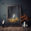 Cute Ghost Wearing Yellow Cowboy Hat Poster Print,Cowboy Art Poster, Art Poster Print, Haunting Ghost, Halloween Decor,Print Art Poster