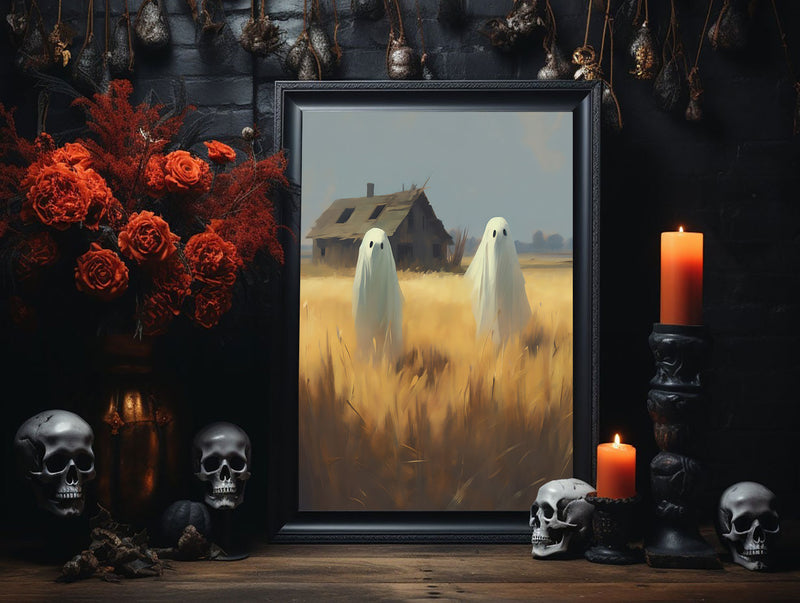 Cute Ghosts in Field, Ghosts Art Print, Halloween Art Print, Halloween Decor, Spooky Vintage Halloween, Dark Academia, Halloween Gift – Best gifts your whole family