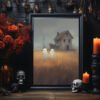 Ghost Hiding Behind Tree Print Poster, Ghosts Art Print, Halloween Art Print, Halloween Decor, Spooky Vintage Halloween, Print Wall Art, Halloween Gift