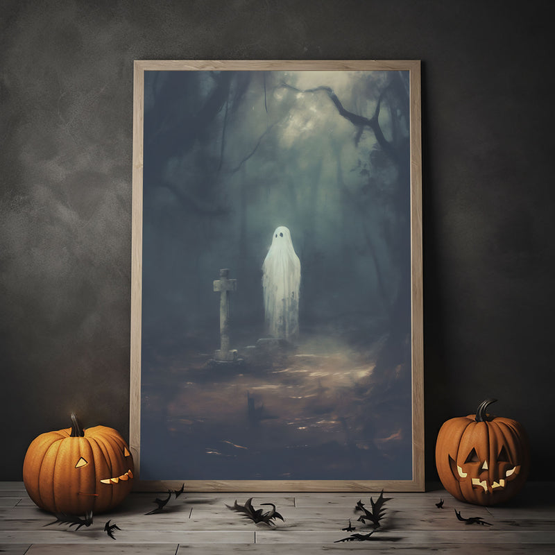 Ghost In The Gloomy Forest Poster, Ghosts Art Print, Halloween Art Print, Halloween Decor, Spooky Vintage Halloween, Print Wall Art