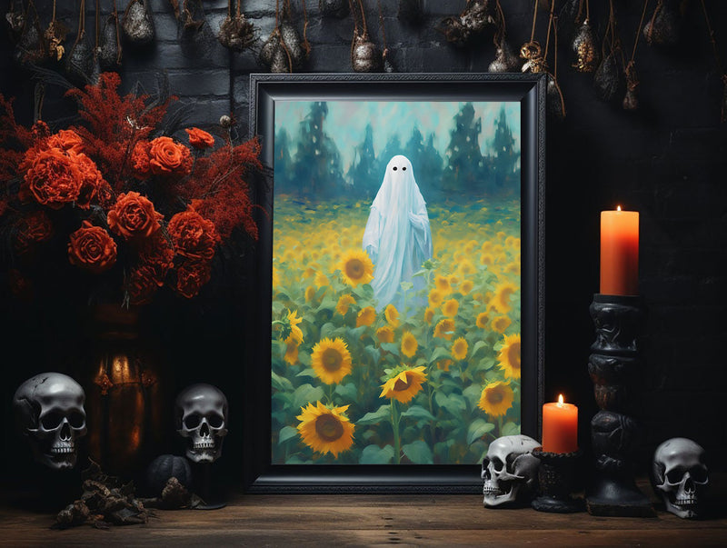 Ghosts In Sunflower Field Poster, Ghosts Art Print, Halloween Art Print, Halloween Decor, Spooky Vintage Halloween, Print Wall Art, Halloween Gift – Best gifts your whole family
