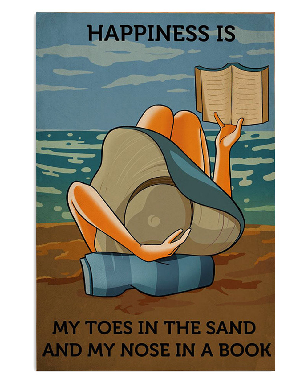 Happy Girl Reading Book Sand Sea Ocean Lover Poster