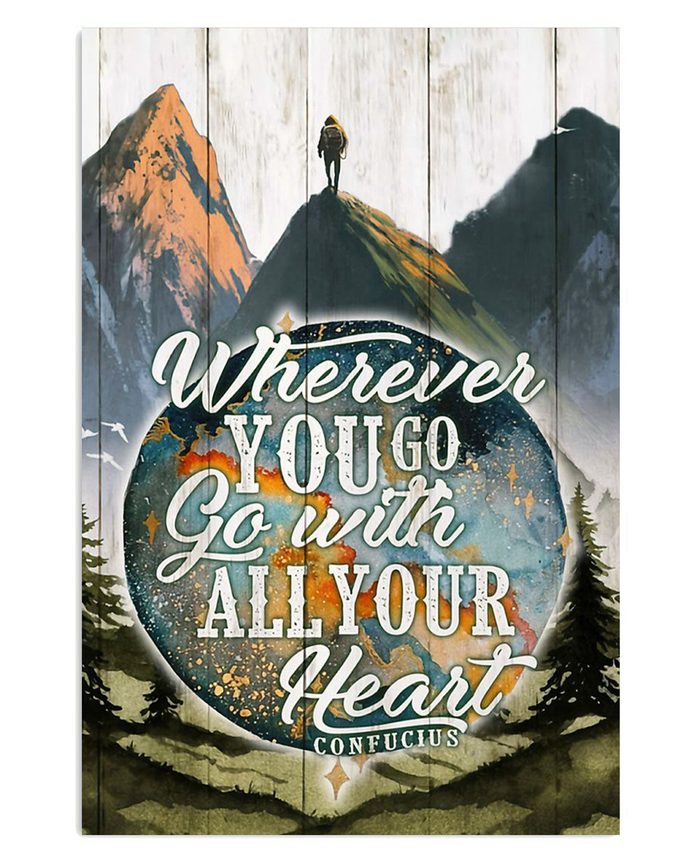 Hiking Go With Your Heart Poster, Adventure Vintage Wall Art, Wanderers Gift, Hiking Lovers Poster
