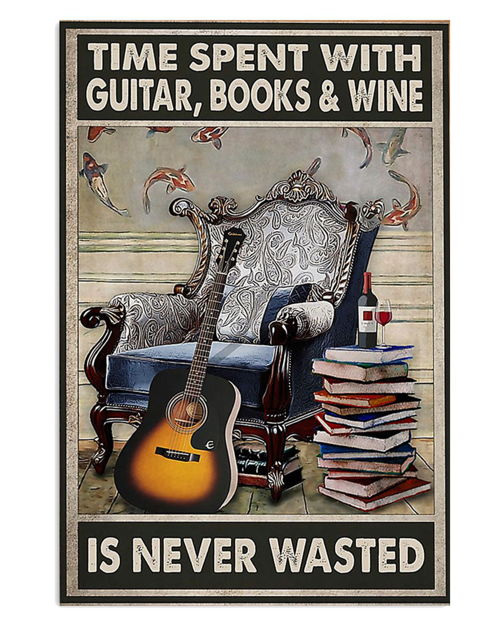 Time Spent With Guitar Books And Wine Guitarist Poster